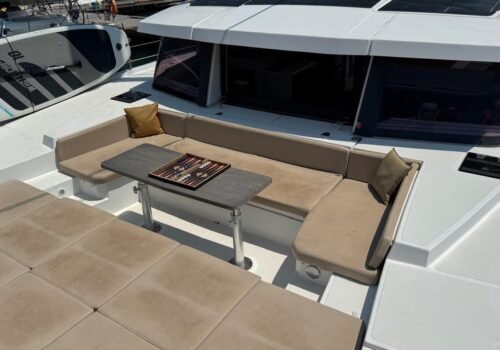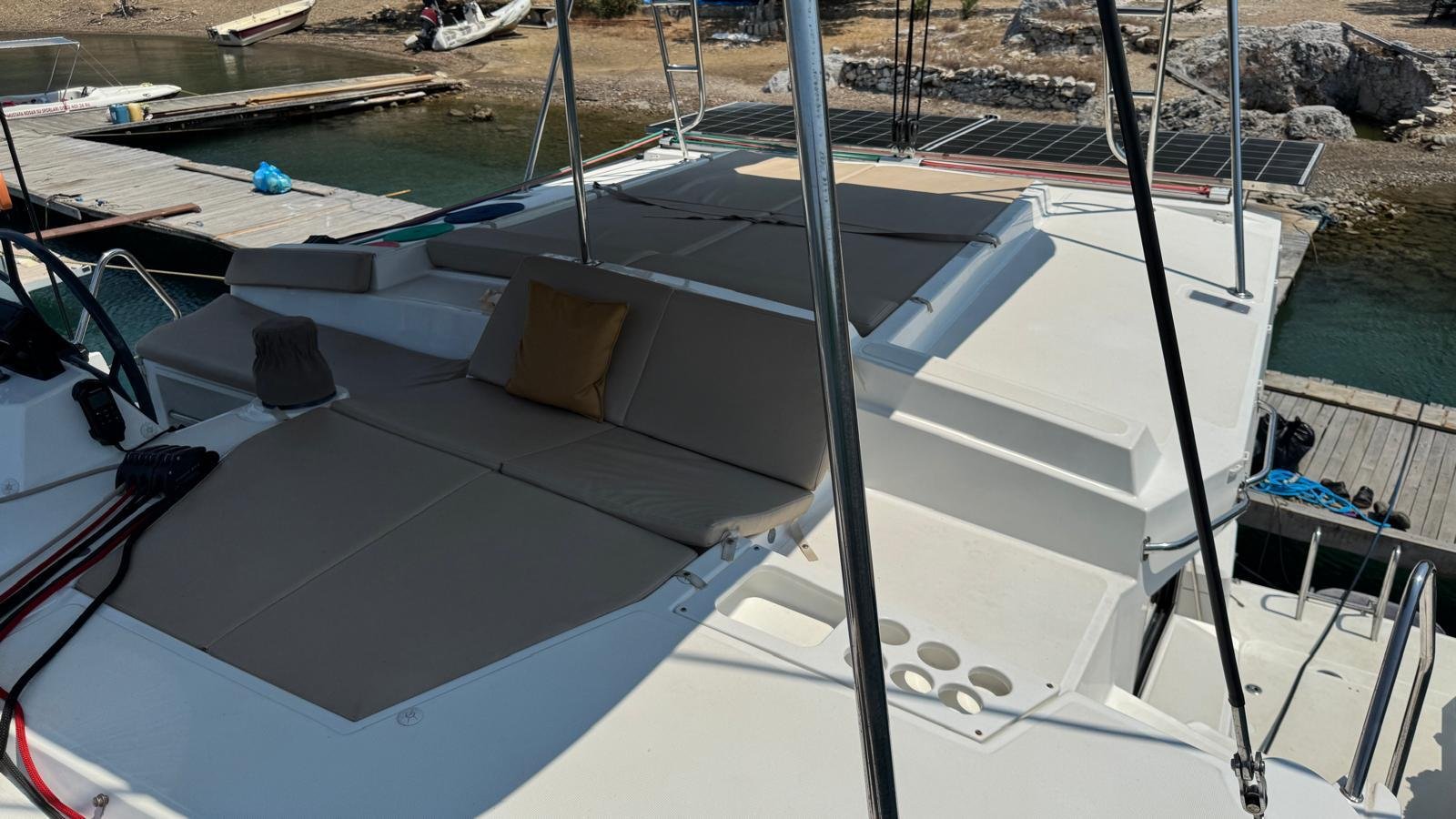 Catamarans offer a much wider and more stable area of use compared to a motor yacht thanks to their structure formed by the combination of two hulls. Our boat coded 30302 makes this advantage felt in every square centimeter. The private lounge area and sunbeds at the front of the boat create a unique relaxation area in the middle of the sea, while the sunbathing areas on the top where the wheelhouse is located allow you to enjoy the view from the highest point. The stern, where the two hull widths meet, provides a very spacious and comfortable movement area. With an abundance of social areas and a well-balanced structure, this catamaran is the ideal choice for guests looking for spaciousness and comfort at sea.