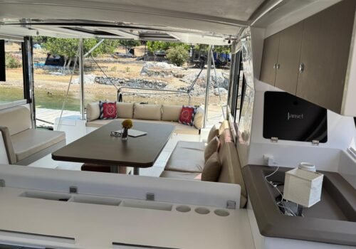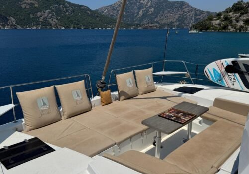 As our guests who want to rent a catamaran know, boats in this segment are usually “empty”. (bareboat). In a standard charter; the daily wages of the captain and crew in the range of at least 150-200 Euros, final exit cleaning starting at a minimum of 300 Euros, transitlog operations and fuel costs of around 400 Euros are reflected as extra costs to the guest. However, we are changing all these rules on our boat coded 30302 within GÖCEK YACHT RENTAL. The price we offer you; In addition to the professional captain, cook and hostess service, fuel, transitlog and final cleaning fees in Göcek bays are fully included. In fact, by taking all these operational costs as a package for the empty rental price of the boat, you both save your budget and focus only on your vacation without encountering surprise costs.