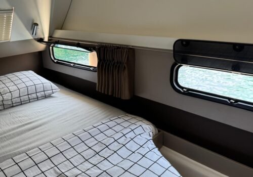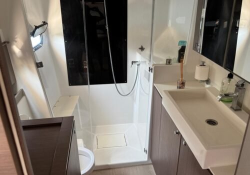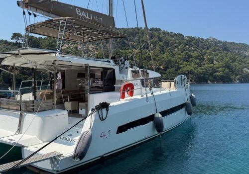 Our catamaran coded 30302, one of the best examples of modern seamanship, was built in 2020 and with a length of 41 feet and a width of 6.85 meters, it does not look like home comfort at sea. With 3 spacious double cabins and 3 private bathrooms for each cabin, it has the capacity to accommodate groups of 6 guests at the highest standards. Our boat, which anchors from Gocek Harbor, offers 3-4 hours of daily air conditioning use as standard to refresh you on hot summer days. Our professional 2-person crew (Captain/Cook and Sailor) is on board to meet all your needs during your vacation.