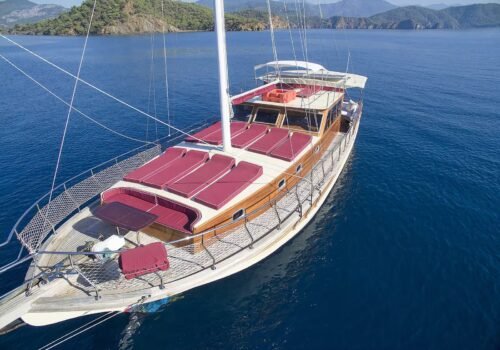 30105 serves with an experienced crew who knows the bays of Gocek very well. This gulet, which attracts attention with its cleanliness, maintenance and comfortable structure, is a very good option for guests who want to make a blue cruise in Göcek. The minimum charter period is 3 days on this boat chartered by Göcek Yacht Charter. Thanks to its large sunbathing areas, comfortable cabins and pleasant living spaces, you can have an unforgettable sea vacation experience while exploring the unique bays of Göcek.