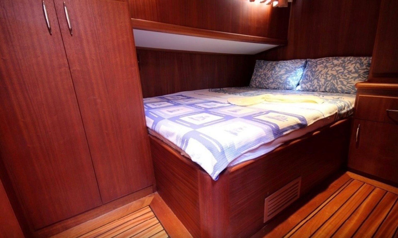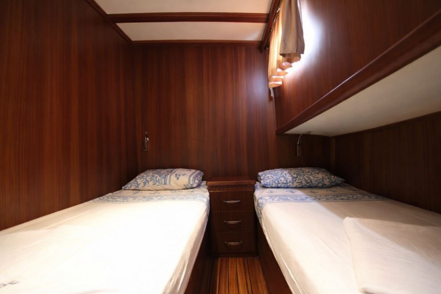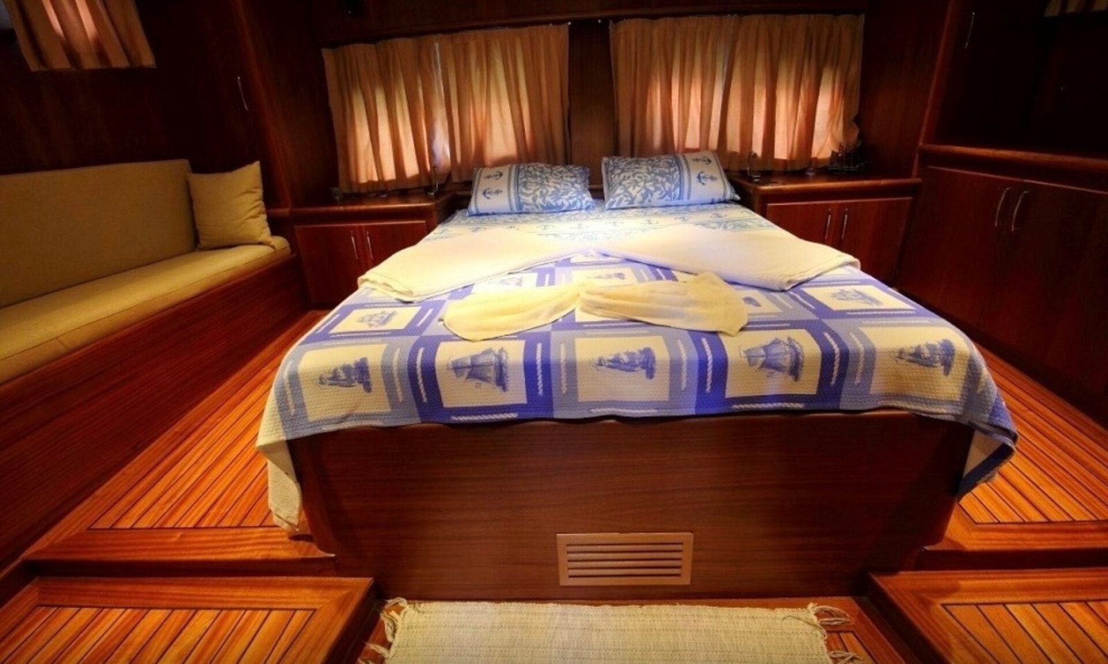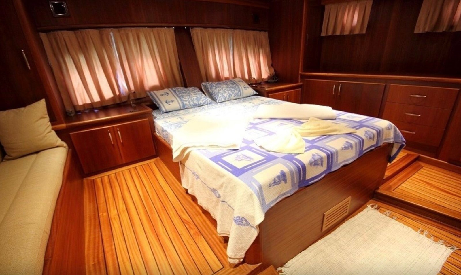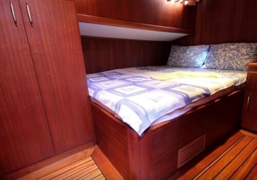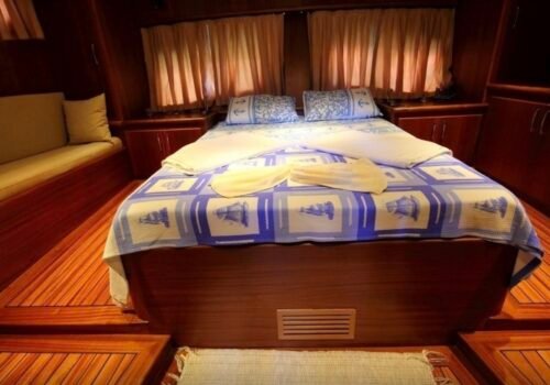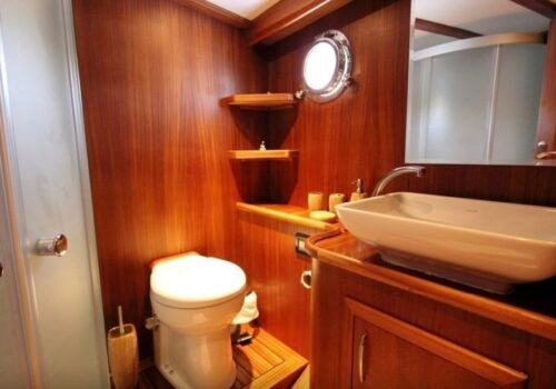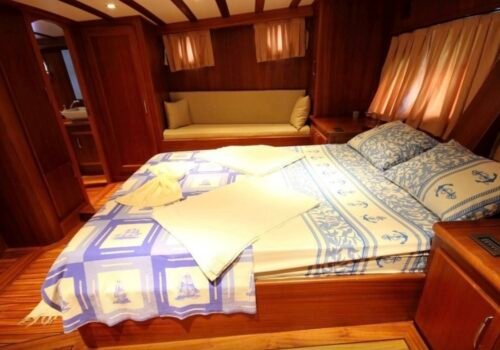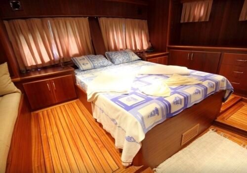 Our boat has a total of 3 cabins, 1 master, 1 double and 1 twin cabin and has a maximum capacity of 6 guests. All cabins have private shower and WC and especially the spacious and spacious master cabin stands out with its comfort. It offers a comfortable accommodation experience thanks to its clean and organized interior structure.