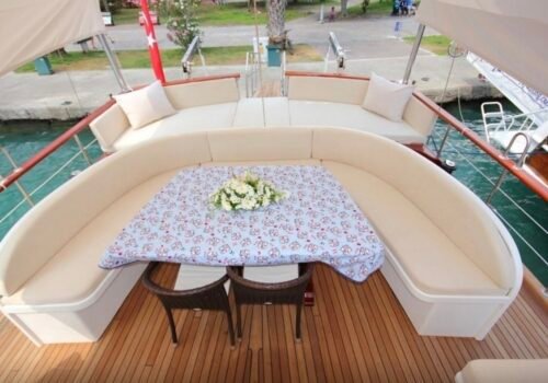 Our boat, which is 18 meters long and 5.5 meters wide, offers a pleasant blue cruise with its spacious structure and wide usage areas. Built in 2013 and completely overhauled in 2026, our boat provides a comfortable holiday opportunity to its guests in its renewed and well-maintained state. All organization processes are carried out through Gocek Yacht Charter .