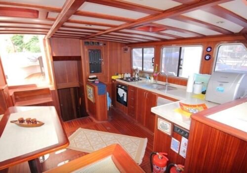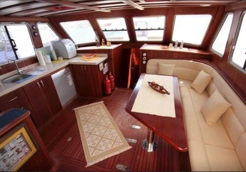 This gulet, which stands out with its spacious living areas, plenty of seating options and comfortable cabin structure, is a very pleasant option for families and small groups. It offers a peaceful sea vacation with its clean, well-maintained and useful structure.