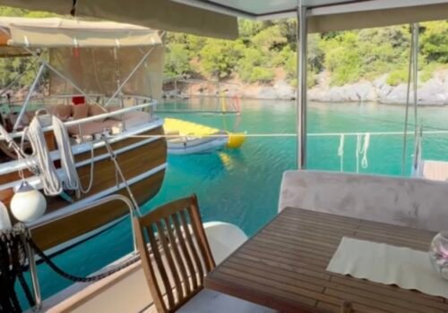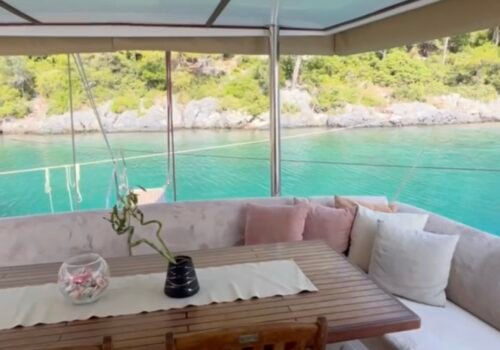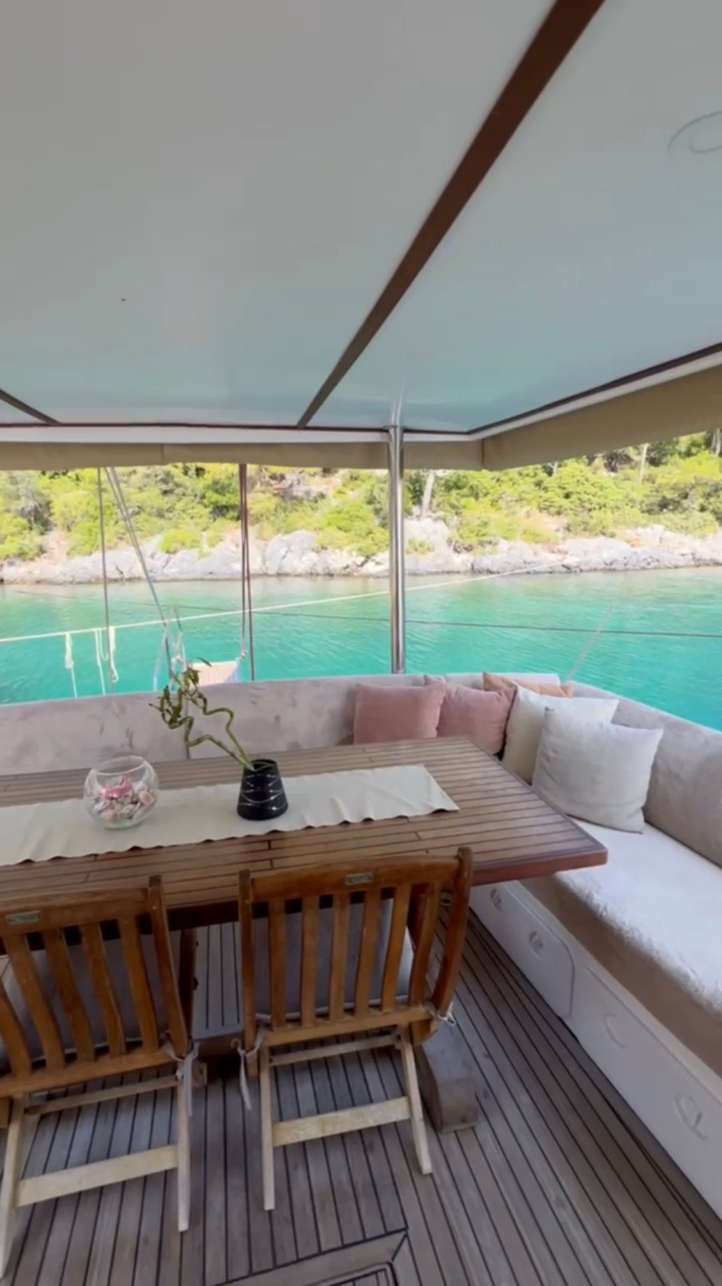 Our boat was built in 2000 and was completely refitted in 2022 and made up-to-date and clean. With a length of 15 meters and a width of 4.6 meters, our gulet offers very useful living spaces despite its compact structure. There is no air conditioning on the boat, and a cool and peaceful holiday experience comes to the fore with the natural sea breeze.