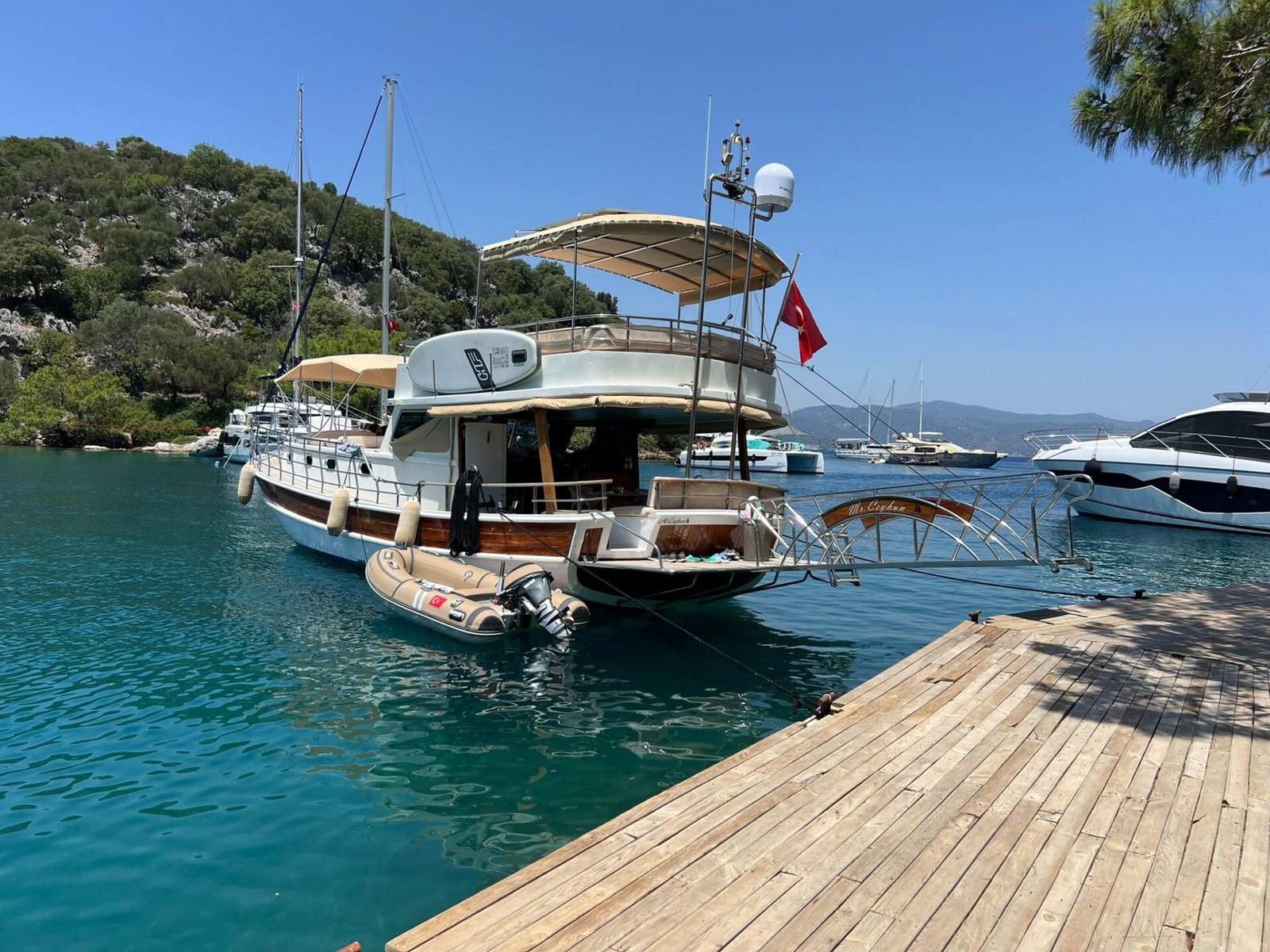 Departing from Gocek marina, our boat with 14 meters length and 4.7 meters width is an ideal gulet option for small groups and families. Standing out with its affordable structure, this boat makes a pleasant blue cruise experience more accessible. All organization processes are carried out through Göcek Yacht Charter.