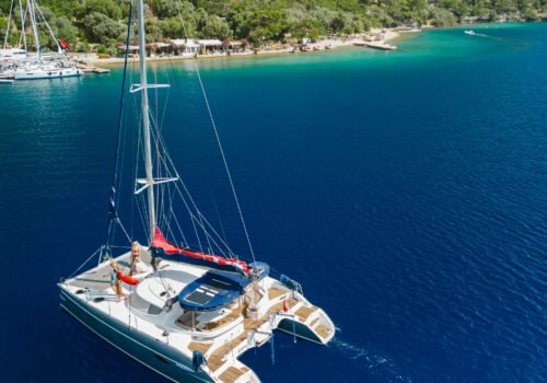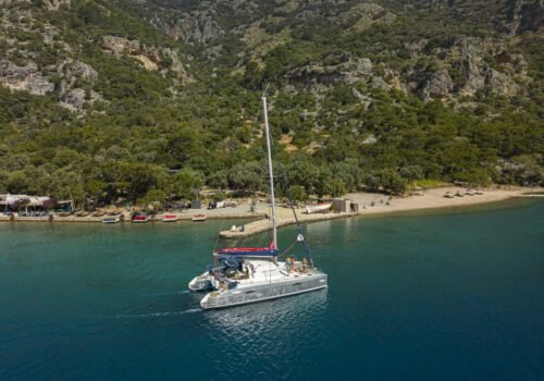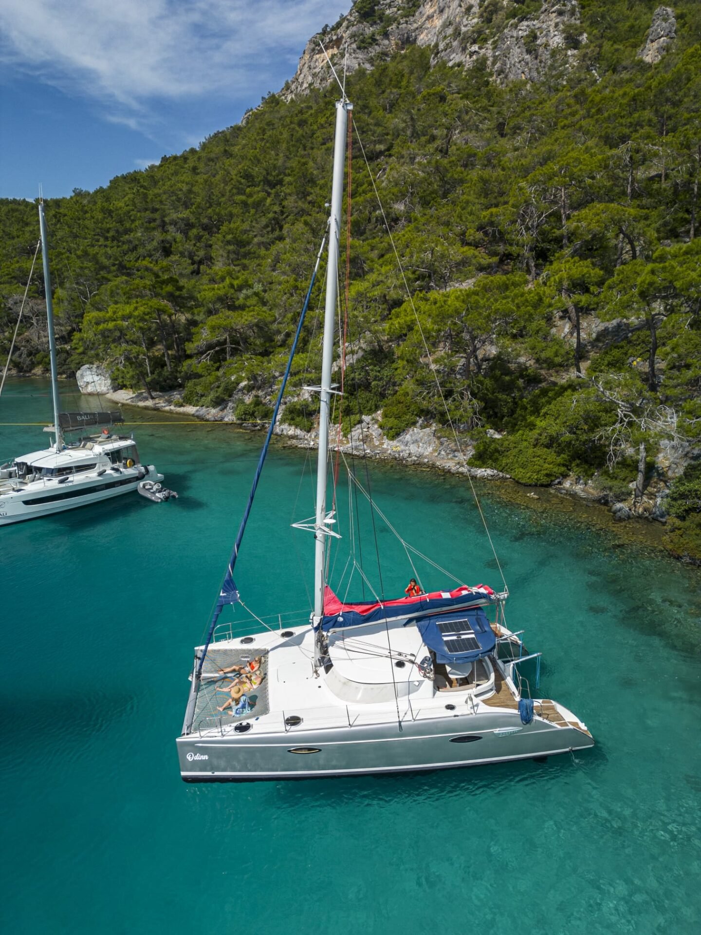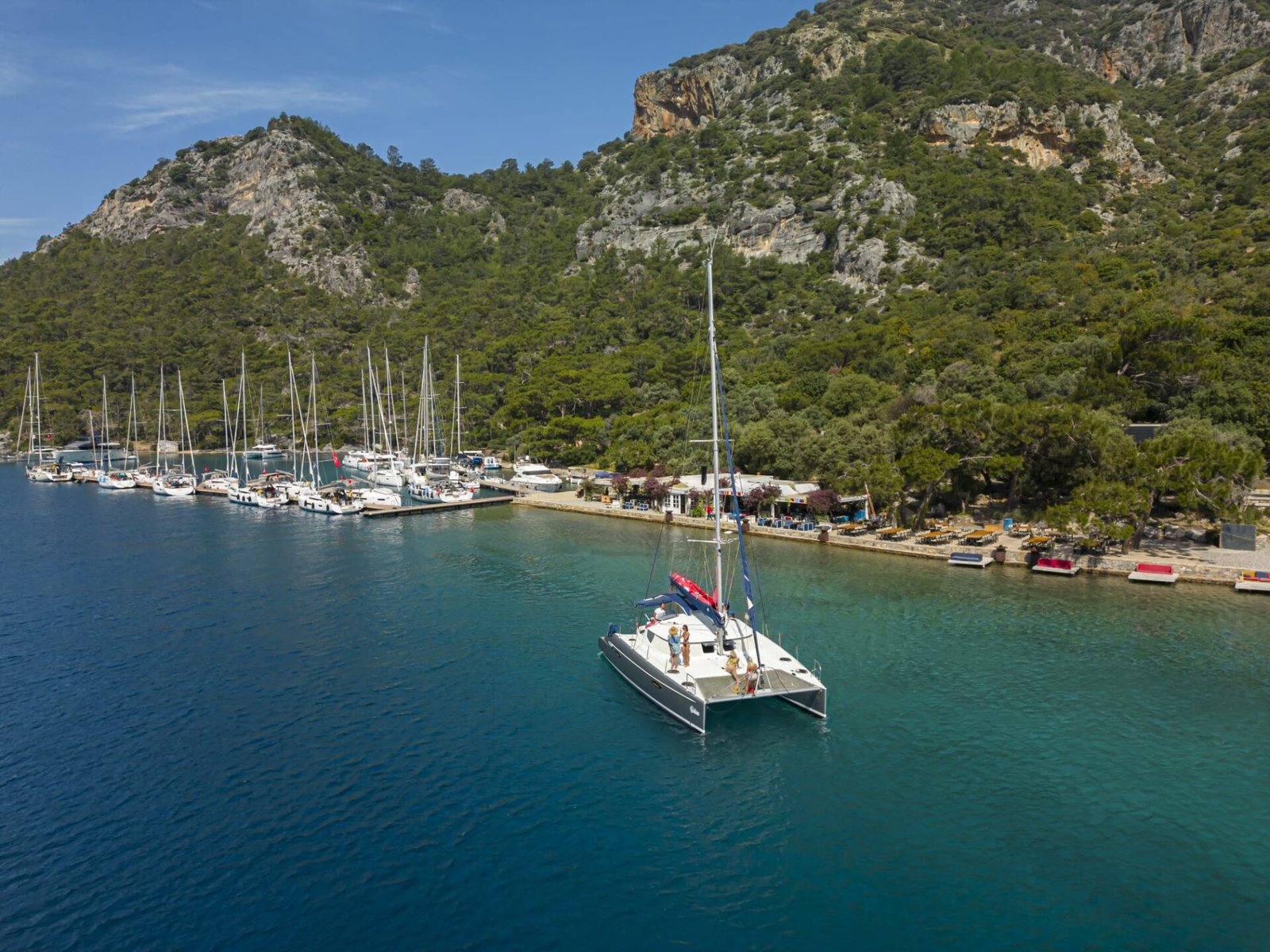 Daily boat tours can also be organized with our catamaran 40304. In the daily tour program, guests are taken to the boat between 10.00 – 10.30 and the tour ends between 15.30 – 18.00. During the tour, 3 to 4 different bays are visited depending on availability. It offers a nice alternative for guests who want to explore the unique bays of Göcek and spend a pleasant day at sea. Please contact us for price information for daily rentals. ☀️🌊