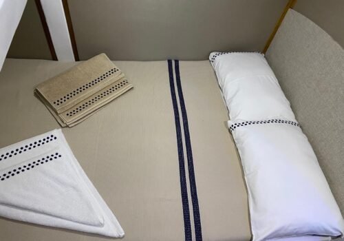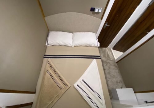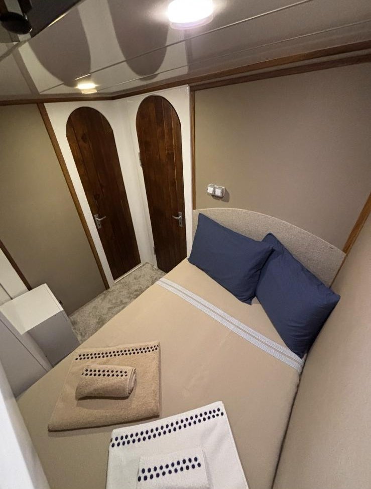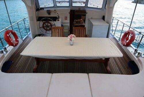 With a capacity of 8 guests, our boat is ideal for crowded groups and families. The accommodation consists of 4 double cabins, each of which is spacious and spaciously designed. Prioritizing the privacy and comfort of the guests, all cabins have toilets with household type toilet bowls and modern bathroom-shower systems. In addition, there is air conditioning on board for you to have a fresh sleep on hot summer days; you can contact us for the details and operational information of the daily 3-4 hour use of the air conditioner.