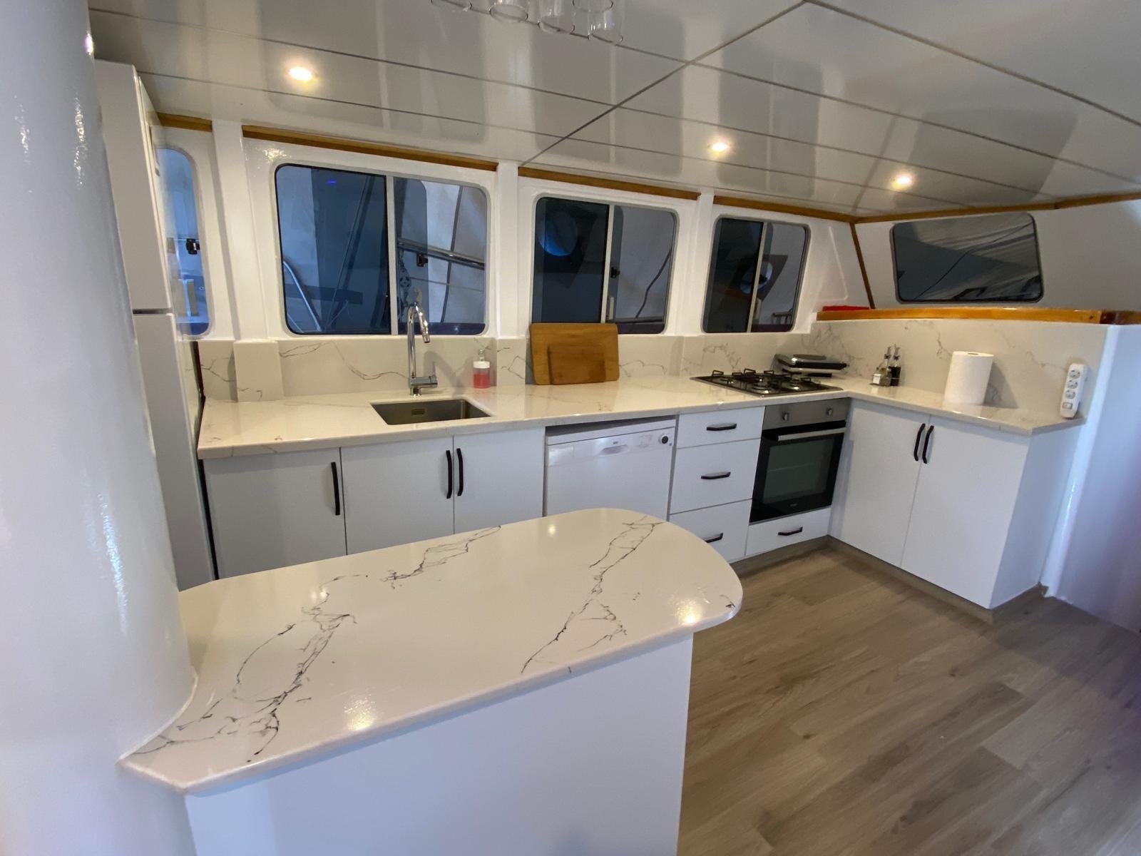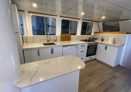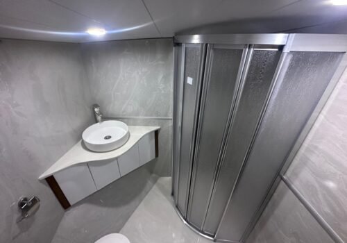 One of the most ambitious points of our boat is the completely renovated kitchen section. Completely modernized, our spacious galley is equipped to meet all kinds of gastronomic needs. Both aesthetically and functionally renovated bathrooms and kitchen area reinforce the feeling of “renewal” throughout the boat. With our tours departing from Göcek, you can enjoy the sea and the sun in the highest segment on this modern and comfortable boat.