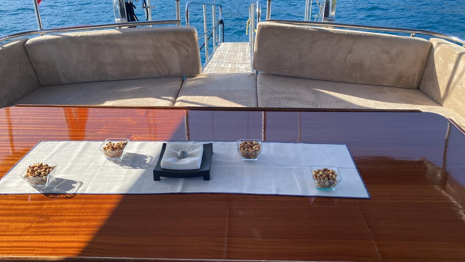 Designed for those looking for an unforgettable vacation in the unique bays of Göcek, our 40109 offers comfort and aesthetics together. With a length of 19 meters and a width of 5.4 meters, this special yacht was built in 2003 and was completely modernized with a comprehensive refit in 2025. Our boat, which inspires confidence with both its hull structure and interior design, has an elegance that will make you feel at home in the middle of the sea.