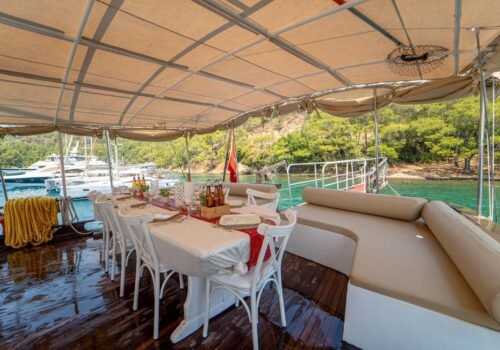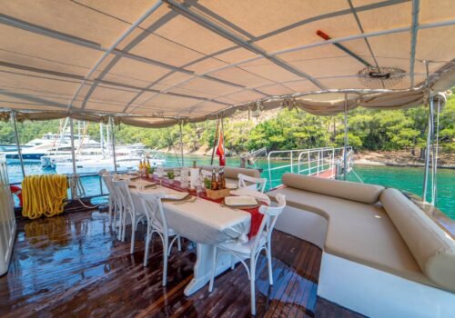 The minimum charter period is 3 days, making it an ideal option for short-term vacations. The boat offers a comfortable and enjoyable Gocek gulet experience with both spacious living areas and modern equipment.