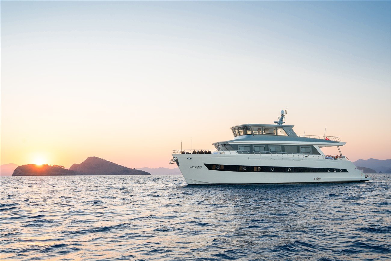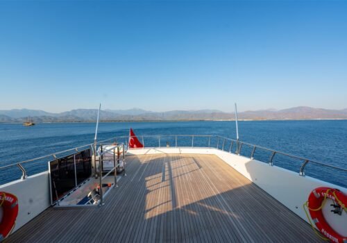 We offer weekly charter service for this luxurious and comfortable trawler boat through Gocek Yacht Charter. Our weekly programs are planned as Saturday entry – Saturday exit. For shorter charters, our guests can get information about availability by contacting us. With this special boat, you can have an unforgettable and privileged blue cruise experience in the unique bays in and around Göcek. 🚤✨