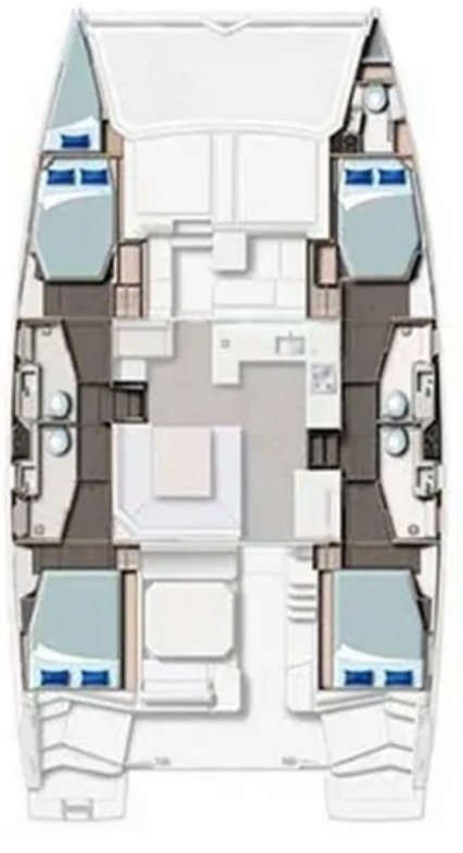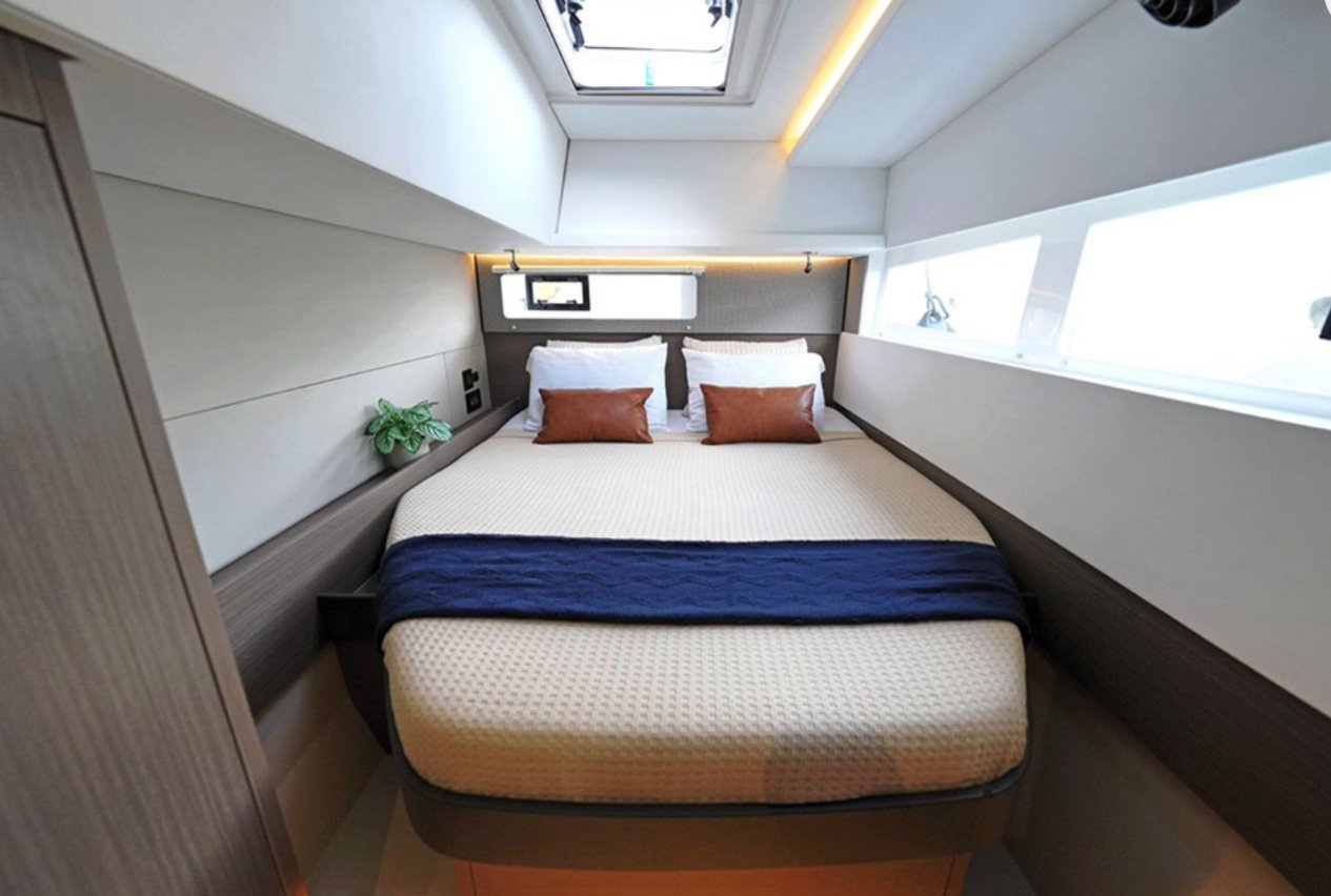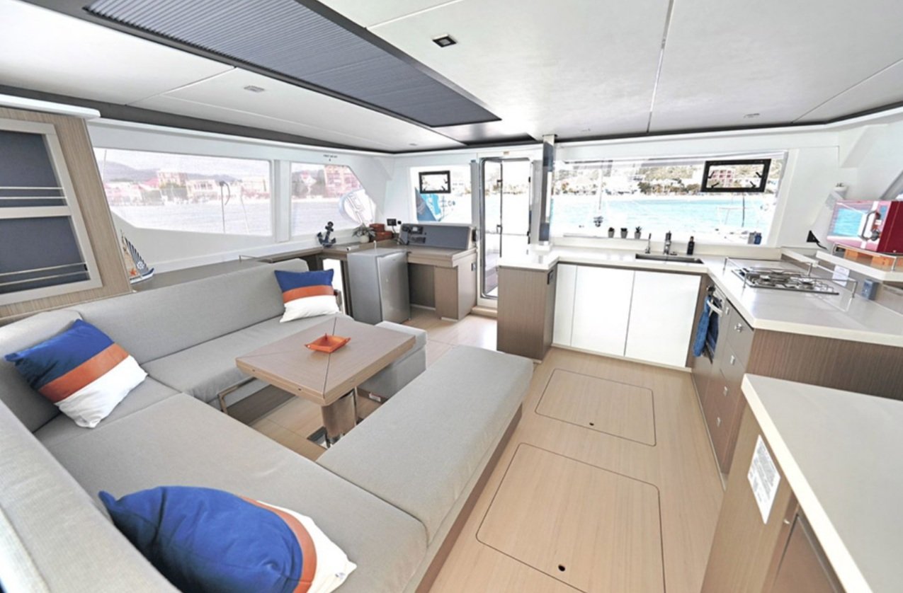Geniş ve ferah yaşam alanlarına sahip olan bu katamaran, hem iç hem dış alanlarda konfor sunar. Kapalı salon, tam donanımlı mutfak, geniş oturma alanları ve keyifli vakit geçirebileceğiniz dış yaşam alanları mevcuttur. Elektrikli tuvalet sistemi, tek dümen yapısı ve ergonomik dümen kürsüsü ile kullanım kolaylığı sağlar. Ayrıca teknede klima bulunmakta olup, günlük ortalama 3-4 saat kullanım imkânı sunulmaktadır.