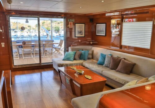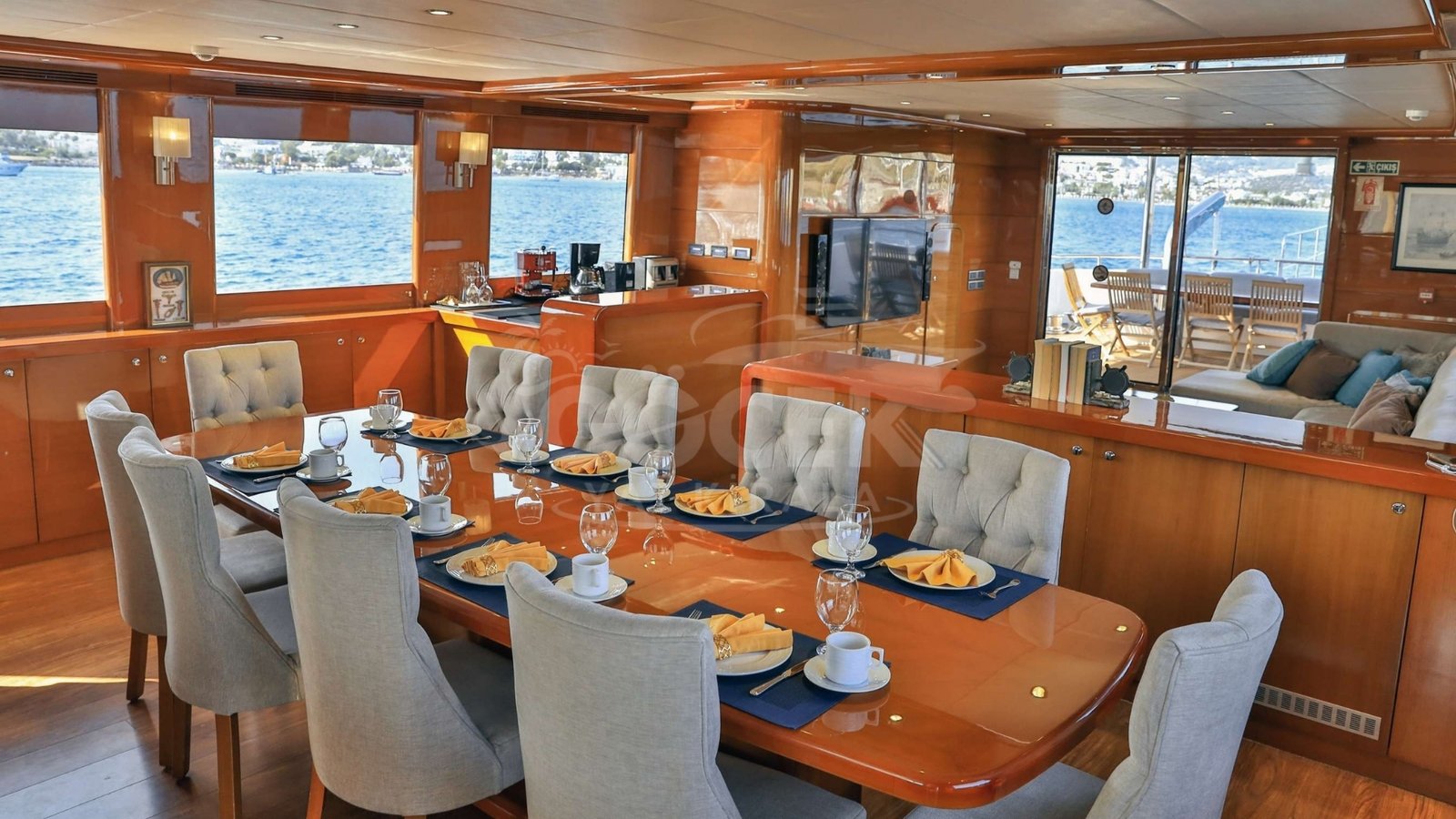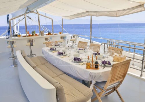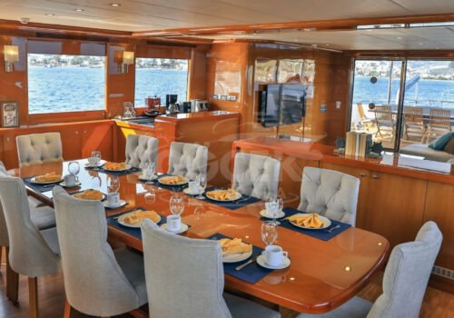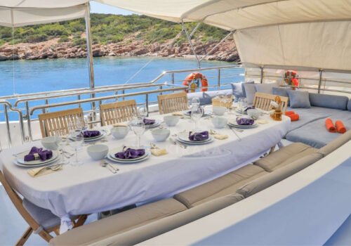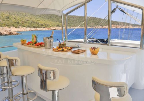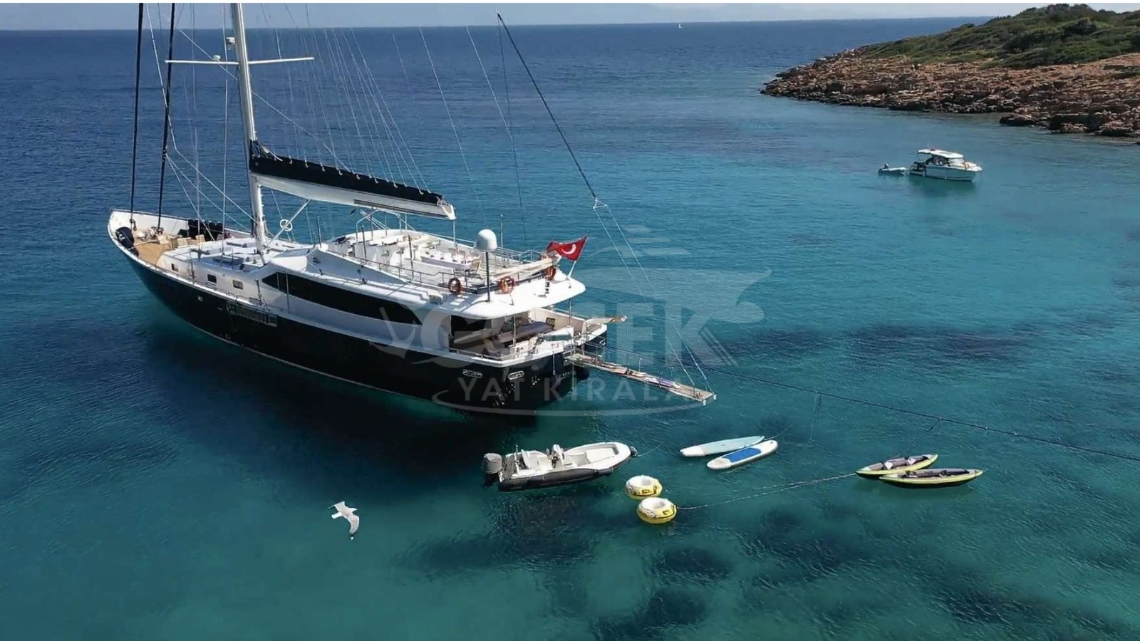 2013 yılında inşa edilen teknemiz, 2023 yılında refit görerek modern üst segment yat konforuna ulaşmıştır. Göcek, Bodrum, Marmaris ve Yunan Adaları dahil olmak üzere kıyı şeridi boyunca seyir yapabilecek esnek bir rota sunar. Teknede 7 kişilik deneyimli mürettebat (kaptan, aşçı ve gemiciler) bulunmakta olup, günlük 24 saat klima sirkilosyonu ve günlük 4 saat seyir hakkıyla yüksek standartta hizmet sağlar.