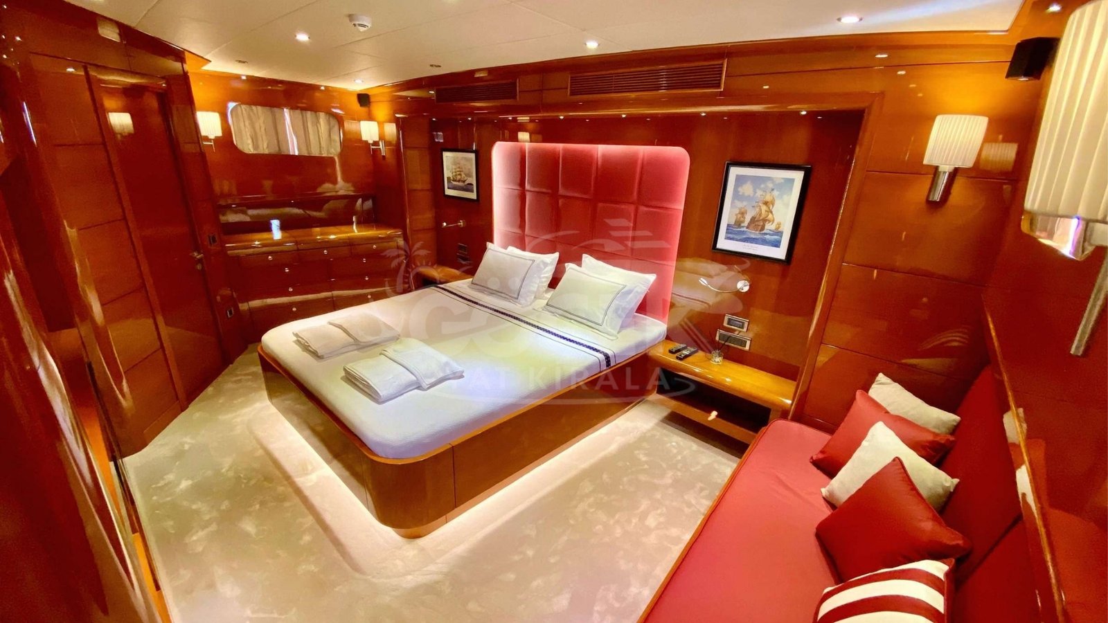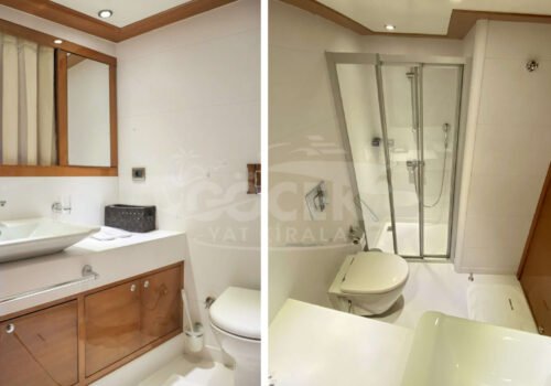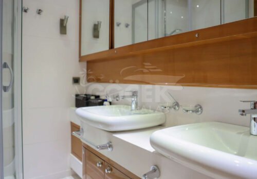 VIP master kabinimiz çift lavabo ve geniş duş kabinleri ile tasarlanmıştır. Kabinin her iki yanında oturma alanları mevcuttur. Tüm kabinler lüks, ferah ve modern detaylarla döşenmiş olup üst segment konforunu garanti eder. Kapalı alanda geniş oturma grubu, yemek masası ve kahve bölümü bulunmakta; Türk kahvesi, espresso ve kahve makineleri ile donatılmıştır.