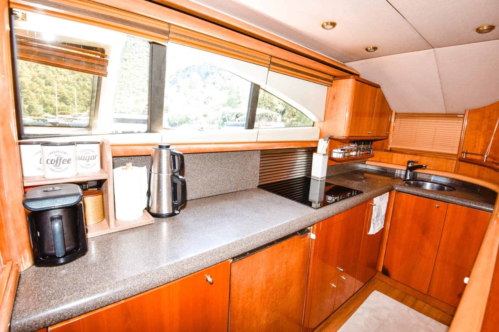 Sunseeker Manhattan 74, deniz üzerindeki konforunuzu en üst seviyeye taşımak için tasarlanmış devasa boyutlara sahip bir teknedir. 24 metre boyu ve 5.85 metre eniyle size ferah bir hareket alanı sunan bu motoryat, 2025 yılındaki kapsamlı refit (yenilenme) çalışmasıyla tamamen taze bir görünüme kavuşmuştur. Sıcak yaz günlerinde teknemizin her köşesinde aktif olan klima sistemi sayesinde serinliğin tadını çıkarırken, her ayrıntısı özenle düşünülmüş geniş güvertesinde denizin keyfini çıkarabilirsiniz.