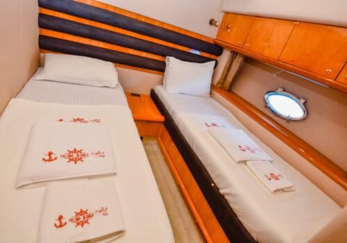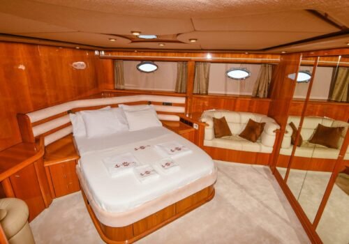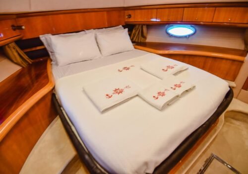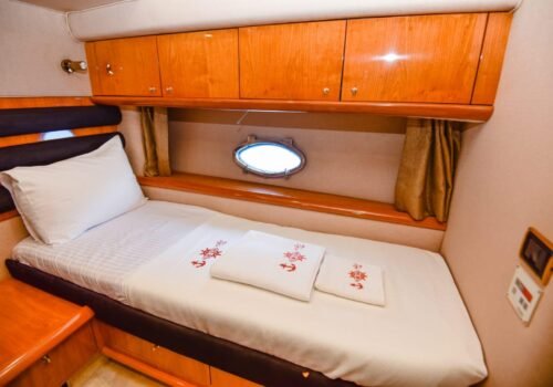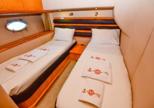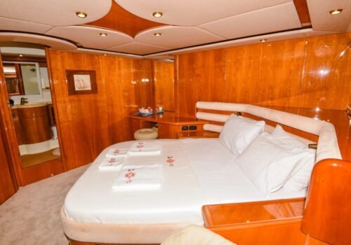 Kalabalık aileler ve arkadaş grupları için ideal bir yerleşim planına sahip teknemizde maksimum 8 misafir konaklayabilir. Toplamda 4 özel kabinden oluşan yerleşim planımız; 1 VIP Master, 1 Master ve 2 Twin kabin şeklinde tasarlanmıştır. Kabinlerin özel duş ve tuvalet alanına sahip olması, misafirlerimize ev konforunda tam bir mahremiyet sağlar. Hem teknik donanımı hem de bu lüks yerleşimiyle teknemiz, Göcek sularında kusursuz bir tatilin kapılarını aralıyor.